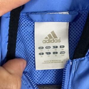Adidas Jacket Women's S Blue Black 3-Stripes Full Zip Hooded Windbreaker
