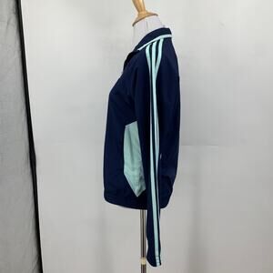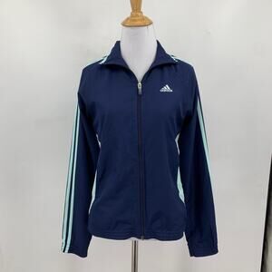 Adidas Jacket Womens S Small Navy Blue Mesh Lined Full Zip 3 Stripes Track