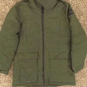 The Adidas Jacket Women's Small Green Xploric Parka Puffer Fur Lined Winter Coat is a warm and stylish option for the winter season. It features a green color, a puffer design for insulation, and a fur-lined hood for added warmth. The parka is also equipped with a zip closure and a lined interior for extra comfort.