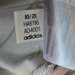 The Adidas Jaquard Golf Polo is a stylish and practical choice for men who enjoy playing golf or simply looking for a comfortable and easy-care shirt. This 2XL polo features a geometric pattern in white, with a collared neckline, short sleeves, and a pullover closure. Made from light fabric wash, it is machine washable for convenience. The shirt is accented with the Adidas logo, making it a sporty addition to any wardrobe. Ideal for summer, fall, or spring, this polo is perfect for any season.