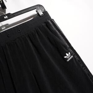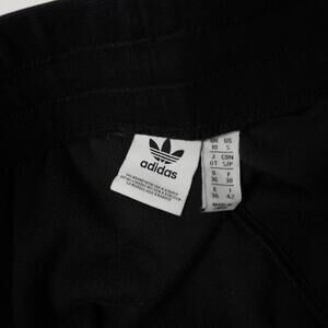 Adidas Joggers Adult Small Black Velour Trefoil Stripes Y2K Track Warm Up 27x27* athletic lounge pants casual comfortable sporty comfort womens s cotton blend stretch spandex neutral