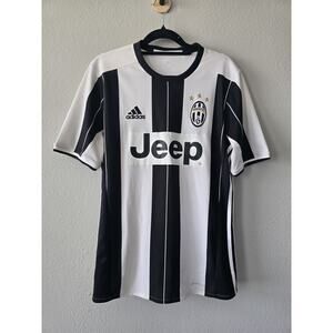 Show your love for Juve with this Adidas Juventus Home Jersey 2016/17, featuring the iconic black & white stripes and Mandžukić #17 print. Official Jeep sponsor and Adidas ClimaCool fabric for breathable comfort. Size XL Youth.