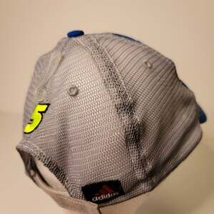 NASCAR Hendrick Motorsports Kellogg's Carquest #5 Drivers were Mark Martin and Kyle Bush. Adidas Climalite Adjustable Hat is New With tags. Hendrick motorsports was team issued for crew of the #5 Kellogg's Carquest car. It is an Adidas Climalite hat with Blue front panel and red/white/blue and yellow stitching and a Grey mesh back.