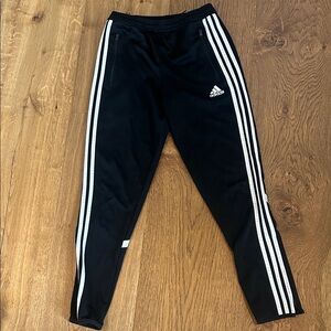 Sleek black joggers with classic white stripes. Perfect for active kids. Comfortable fit.