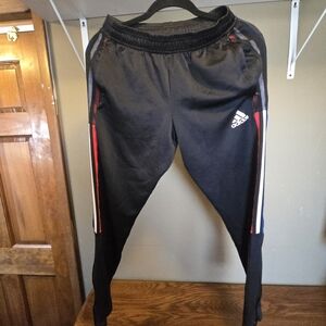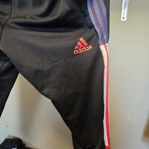 Adidas Kids Black Track Pants with Red and Blue Stripes