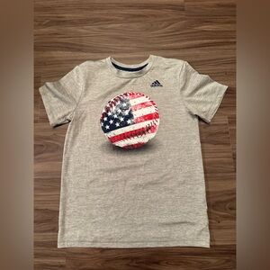 Adidas Kids Gray Climalite Tee with Flag Baseball Graphic size M 10/12