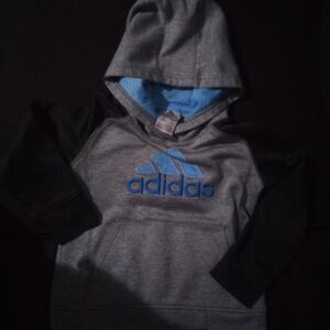 Adidas Kids Gray and Black Hoodie with Blue Logo