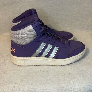 Adidas Kids Hoops Unisex Sneakers Size 5 Purple Matte Silver Basketball School