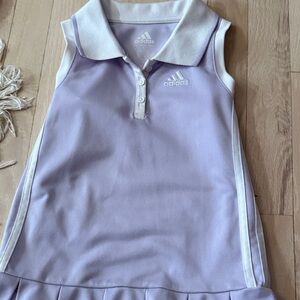 Stylish Adidas dress in light purple. Features a polo collar and pleated skirt. Ideal for casual outings.