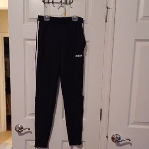 Sleek navy joggers with iconic white Adidas logo. Perfect for active kids. Comfortable fit and stylish design.
