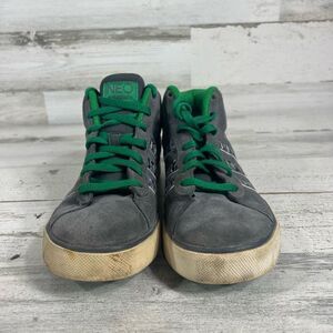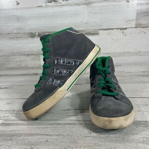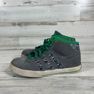 Adidas Kids Neo High Tops Shoe Casual Sneakers Gray Suede Green Stripes 4 US