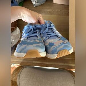 Adidas sneakers with a blue and tan camo pattern. Ideal for active kids.