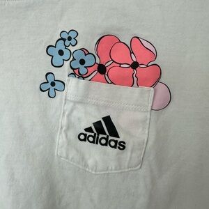 Adidas Kids White Tee with Pink and Blue Floral Accents