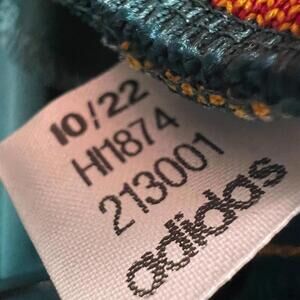 Cheer on LA Galaxy in style with this official Adidas 2024 Men's Away Soccer Jersey, size L. This jersey features a sleek slim fit and is crafted in a striking Myshgrn/Teccogo colorway — a deep green base with vivid yellow accents on the shoulders and sides. The eye-catching multicolor pattern around the collar adds a unique and authentic touch inspired by cultural motifs.