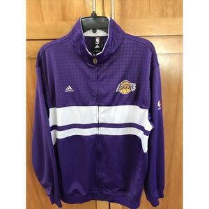 Adidas LOS ANGELES LAKERS PURPLE WHITE WARMUP CLIMALITE JACKET MEN M Full Zip