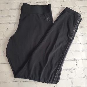 Adidas Large Leggings Black Mid-Rise Yoga Stretch Workout Ankle Logo Athletic