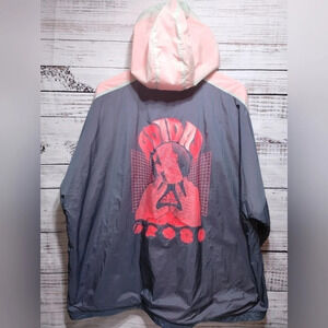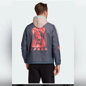 Introducing the Adidas Legacy Blue ID Volleyball Windbreaker GP9748, the perfect addition to your athletic wardrobe. Made with 100 percent polyester, this windbreaker is both durable and machine washable. It has Japanese writing on it and is hard to find. The legacy blue color with a dusty gray undertone is both trendy and versatile. With a 30" pit to pit and 29" length, this windbreaker is available in Men's 2XL. The long skinny button pocket on the front with a neon mesh lining is perfect for storing your cell phone, keys, and other essentials, while the two zippered pockets underneath connect and provide additional storage. Great condition.