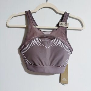 Adidas DRST Torch Bra in color legacy purple. Removable padding. Medium support.