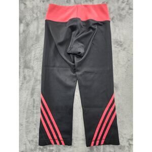 Adidas Climalite 3 Stripe Active Capri Leggings Size S Black Coral Workout Gym Running Fitness Training Athletic Sporty Athleisure
