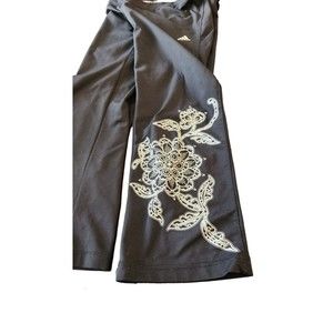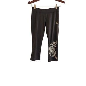 Adidas Leggings Women's Size Medium Black Flower Design Low-Rise Regular Capri