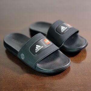 Adidas Lego Adilette Comfort Slide Sandal Black Red Logo Worldwide Ultraboost.