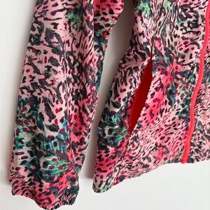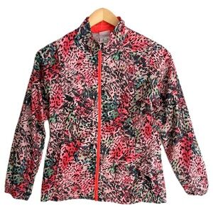Adidas Leopard Print Zip Jacket Kids Girls Size M 10/12 Neon Pink Windbreaker