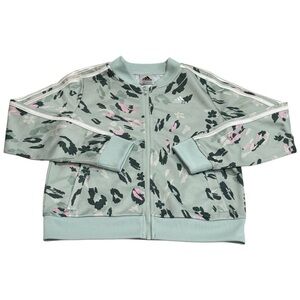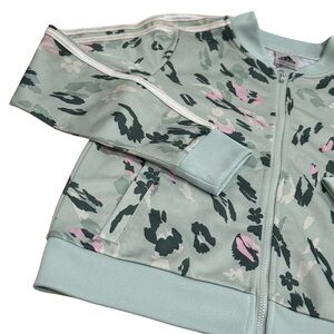 Adidas Light Green Pink White Leopard Paint Print Track Jacket Girl's Size 10/12