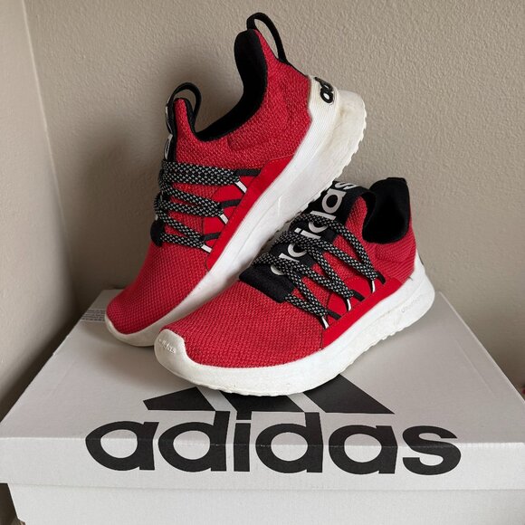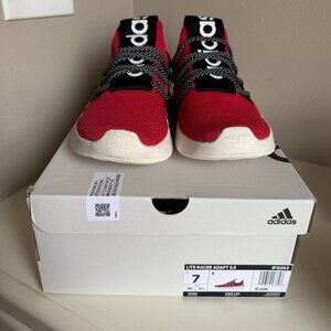 Gently used Adidas Lite Racer Adapt 5.0 in red, white, and black. Includes original box. Will ship in additional exterior packaging. The soles are a bit stained (typical for white soles) but the shoes are gently worn and in great condition. Comfortable slip-on style! Men's/Teen boys size 7.