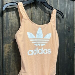 Adidas brand 1pc swimwear. Size medium. Peachy orange color. Logo on front. Hi cut sides. No padding. Preloved. Please see all photos for condition.