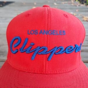 Adidas Los Angeles LA Clippers Draft Cap Anniversary Collection red snapback hat. Solid red fabric with 3D embroidered Los Angeles Clippers front spellout, side embroidered NBA logo, back embroidered Adidas signature logo, and adjustable plastic snapback closure. In excellent condition! 100% cotton. One size.