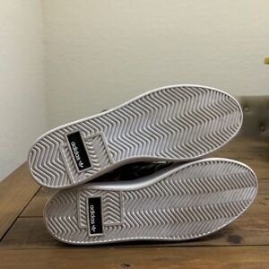 Excellent condition with light wear, with shoe box included. The design is a faux leather crackling amongst orange flowers. The shoes show some bumps on the white sole edge bottoms. Please take a look at the pictures for shoe details.