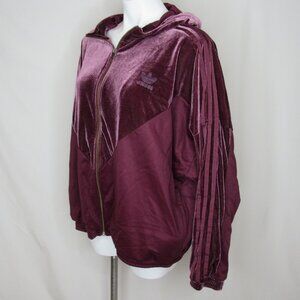 This is an Adidas Velvet Vibes maroon red track jacket in women's size xlarge.