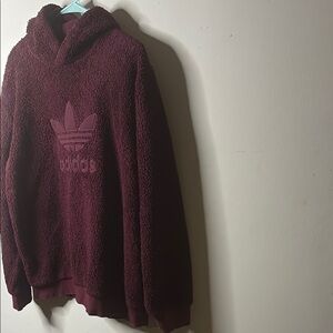 Warm Adidas hoodie with soft sherpa texture. Features classic logo on front.