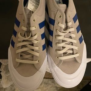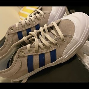 New in box, Adidas Skateboarding Matchcourt sneaker. Tan and white. Size 8. Great shoe, rare find.