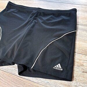 These Adidas athletic shorts are designed for enhanced performance with Clima365 technology, providing breathability and comfort. They feature a sleek black design with white piping, suitable for various sports and workout sessions. The shorts offer a snug fit with drawstring closure, ensuring they stay in place during intense activities.