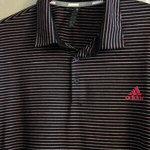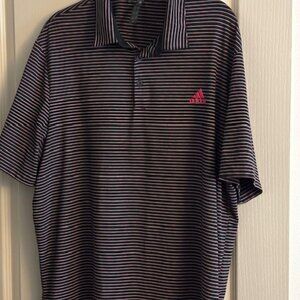 Adidas Men XL Polo Logo Golf Black Multi Stripe Short Sleeve Shirt.