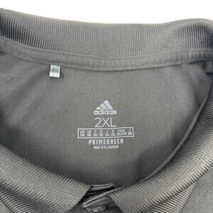 This is a pre owned Adidas Mens 2Xl Solid Black Prime Green Short Sleeve Golf Polo Shirt. This item is in good condition with minimal or no signs of use. Lighting will affect darker colors in pictures. Item is not faded.