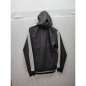 Adidas Mens Black Hooded Full-Zip Jacket With White Stripes Large