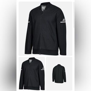 Sleek black design with subtle texture. Lightweight and versatile. Features Adidas logo on sleeve.