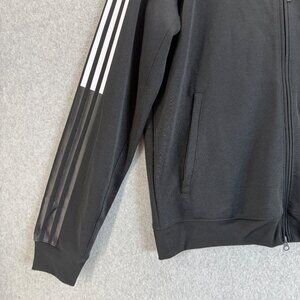 Adidas Mens Black Track Jacket Workout Athletic Full Zip 3 Stripes Size Large