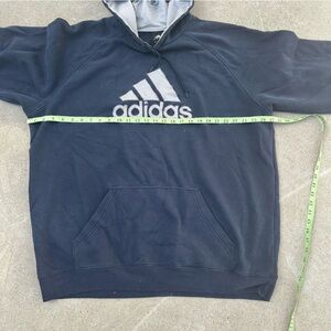 Classic Adidas hoodie in navy. Features iconic logo on front. Comfortable and stylish for everyday wear.