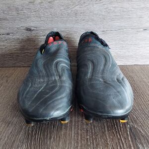 These cleats feature a laceless upper crafted from a blend of K-leather and Adidas stretchy Primeknit yield a comfortable, cushioned fit. There are scientifically placed Sensepods to cut out the negative space around the ankle and anchilles, creating a feeling that blurs the line between foot and cleat. The cleat is also treated with fusionskin to reduce water intake whole staying flexible.