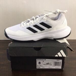 **adidas Men's Gamecourt 2.0 Tennis Shoes - White/Black - Size 8**