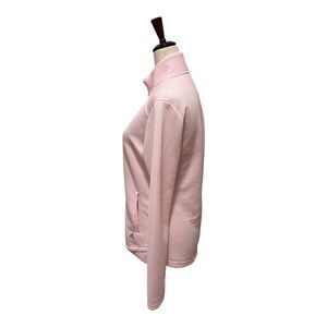 The Adidas Men's Golf Ultimate365 DWR Textured Water Repellent Sandy Pink sweater is a versatile and stylish choice for golf enthusiasts. Made from 100% polyester knit fabric, this sweater is lightweight and easy to care for, making it perfect for all seasons. The pullover style with a mock neck and full zipper offers comfort and breathability, while the water-resistant feature ensures you stay dry on the course. With a straight hem and solid pink color, this sweater is a classic addition to any golf wardrobe, suitable for various activities like tennis, golf, or pickleball.