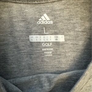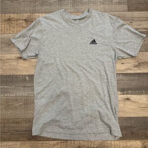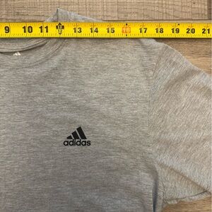 Classic Adidas tee in heather gray. Features short sleeves and iconic logo. Ideal for everyday wear.
