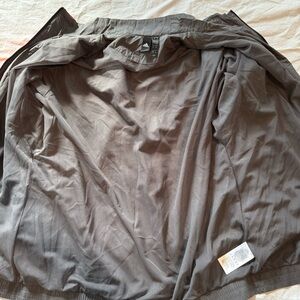 Sleek adidas windbreaker with vibrant orange accent. Perfect for outdoor activities.