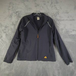 Adidas Mens Jacket Windbreaker Gray Yellow Waist Length Pockets Logo Mock Neck M