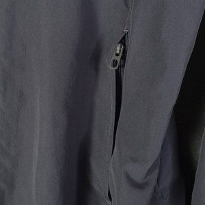 Adidas Mens Windbreaker Jacket Gray Yellow Waist Length Pockets Logo Mock Neck M