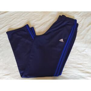 Adidas Mens L Navy Blue Track Pants Athletic 3 Stripe Workout Polyester