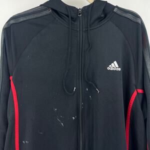 Adidas Mens LARGE Black Red Stripe Zip Up Hoodie Jacket Long Sleeve Paint Splatter Damaged